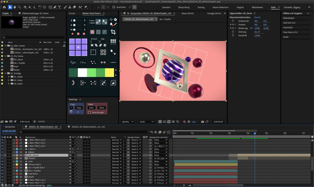 - Werkzeuge: Software wie Adobe After Effects, Cinema 4D, Blender; Techniken wie Keyframing, Easing, Compositing.